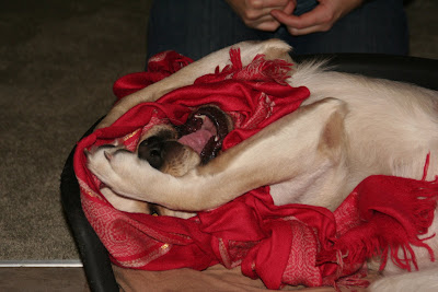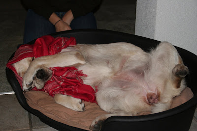 De decembermaand was ook voor Opal een feestmaand. Er was altijd wel iets extra te doen, er kwam visite waardoor ze extra aandacht kreeg en ze is mee logeren geweest. Het gaat wat dat betreft allemaal voorbeeldig. Met het vuurwerk ging het gelukkig ook goed. Ze reageerde er amper op. Opal lijkt ook waaks te worden. Op dit moment wordt er bij ons verbouwd en als 's ochtends vroeg de bouwvakkers binnen komen, dan worden ze al door Opal blaffend begroet. Of het echt waaksheid is weten we niet, want ze is misschien ook gewoon een beetje bang...