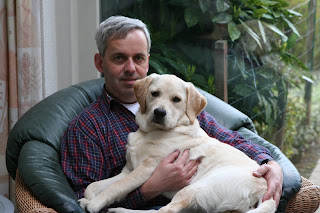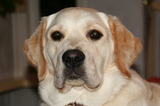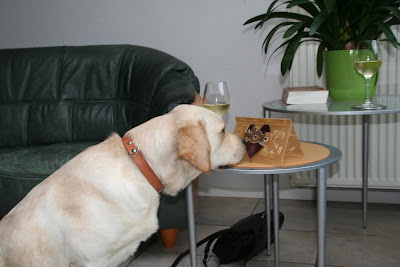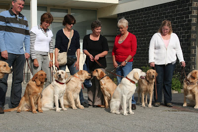 In mei werd het baasje 50 jaar en stond er een KNGF Sara in de tuin, compleet met KNGF puppie. Opal vond dat prachtig en eindigde uiteindelijk op schoot van Sara.